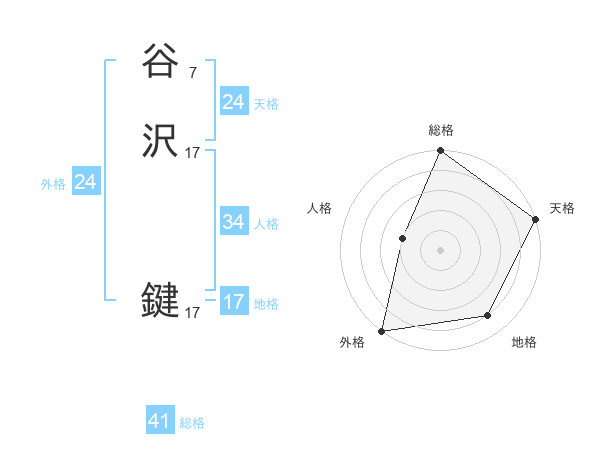 谷沢 鍵さんを姓名の画数から五運を鑑定