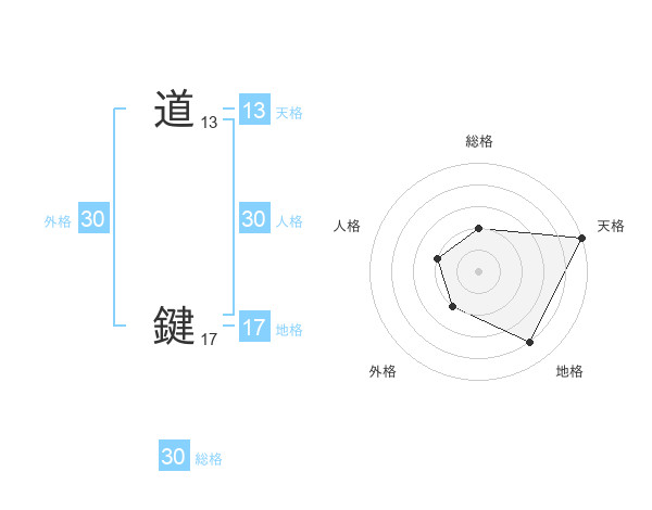道 鍵さんの総格は30画の2点!