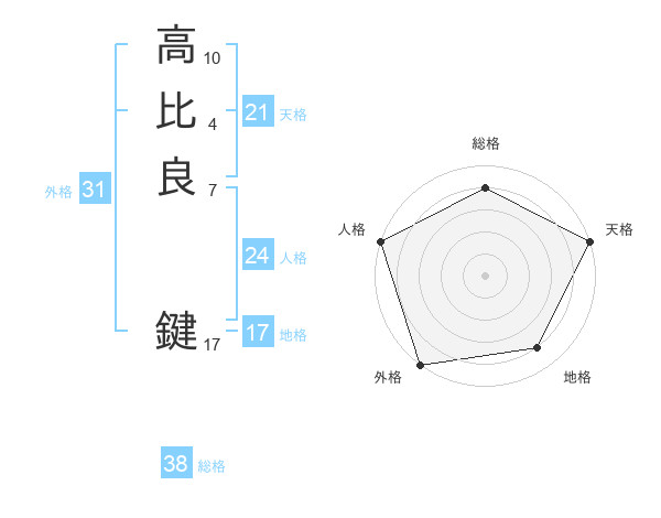 高比良 鍵さんを姓名の画数から五運を鑑定