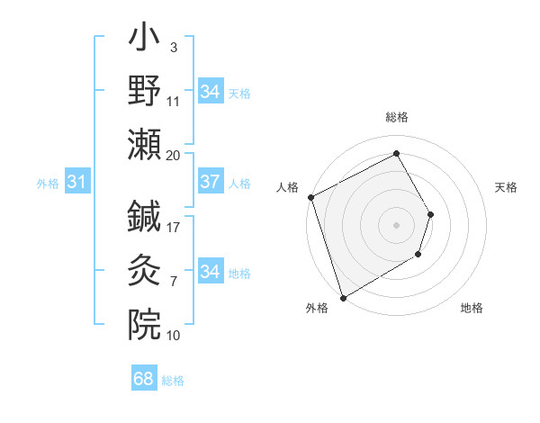 小野瀬 鍼灸院さんの地格は34画の2点!