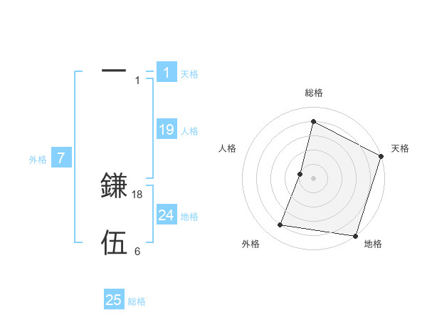 一 鎌伍さんを姓名の画数から五運を鑑定