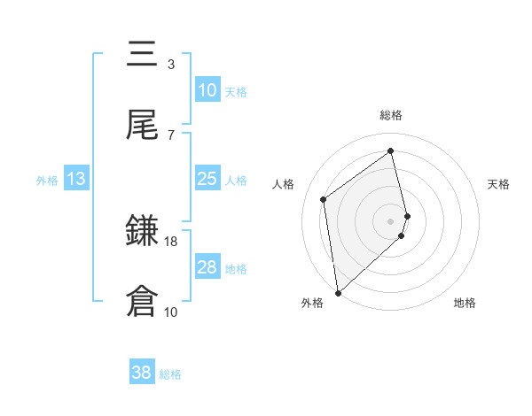 三尾 鎌倉さんを姓名の画数から五運を鑑定