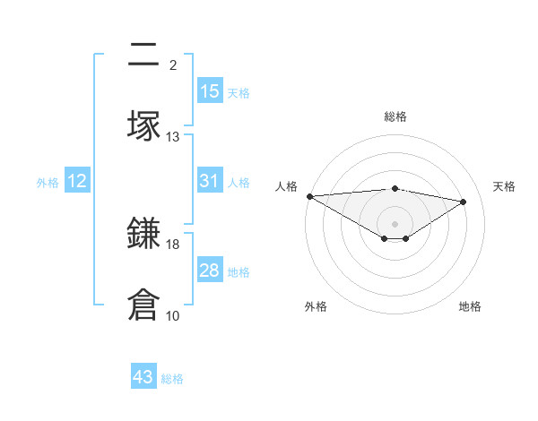 二塚 鎌倉さんを姓名の画数から五運を鑑定