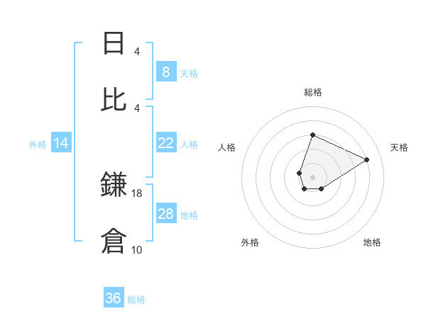 日比 鎌倉さんを姓名の画数から五運を鑑定