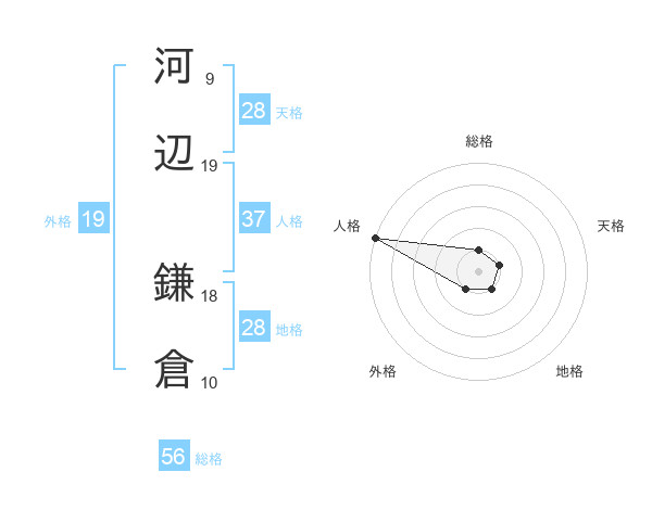 河辺 鎌倉さんを姓名の画数から五運を鑑定