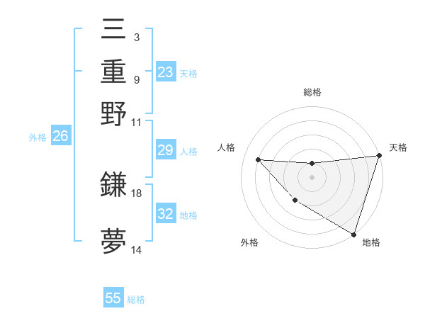 三重野 鎌夢さんを姓名の画数から五運を鑑定