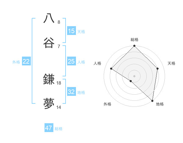 八谷 鎌夢さんを姓名の画数から五運を鑑定