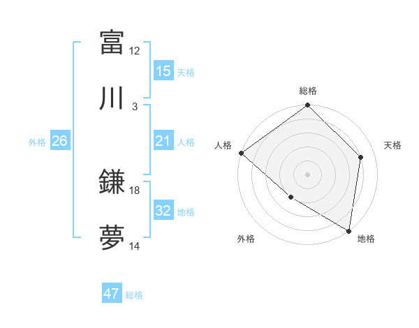 富川 鎌夢さんを姓名の画数から五運を鑑定