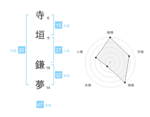 寺垣 鎌夢さんを姓名の画数から五運を鑑定