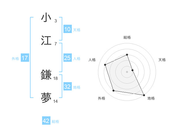 小江 鎌夢さんを姓名の画数から五運を鑑定