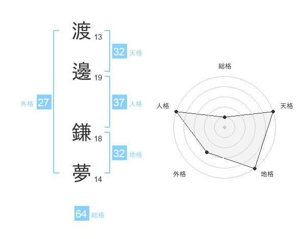 渡邊 鎌夢さんを姓名の画数から五運を鑑定