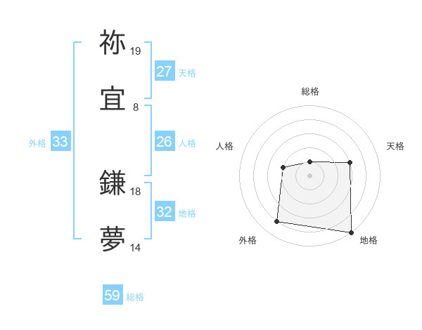 祢宜 鎌夢さんを姓名の画数から五運を鑑定