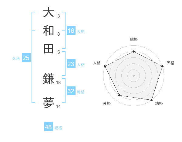 大和田 鎌夢さんを姓名の画数から五運を鑑定