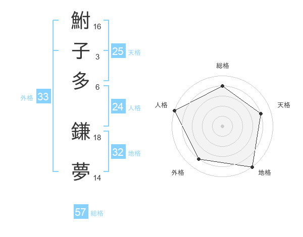 鮒子多 鎌夢さんを姓名の画数から五運を鑑定