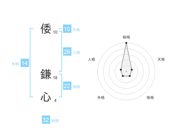 倭 鎌心さんの総格は32画の5点!