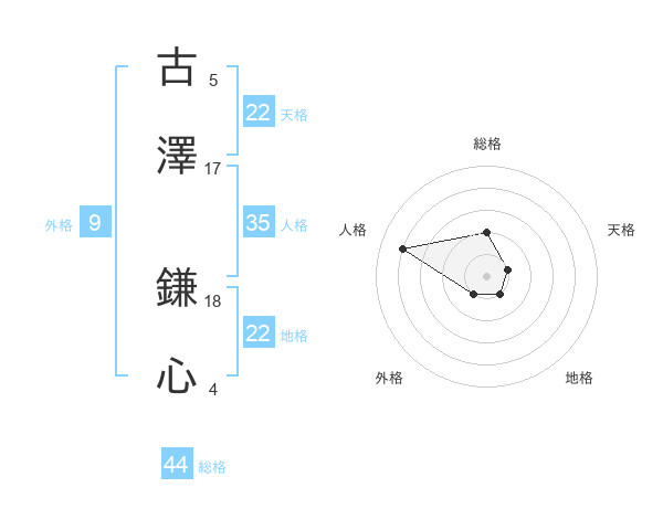 古澤 鎌心さんの天格は22画の1点!