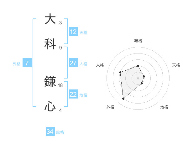大科 鎌心さんを姓名の画数から五運を鑑定