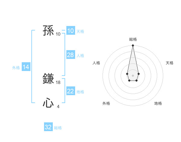 孫 鎌心さんを姓名の画数から五運を鑑定