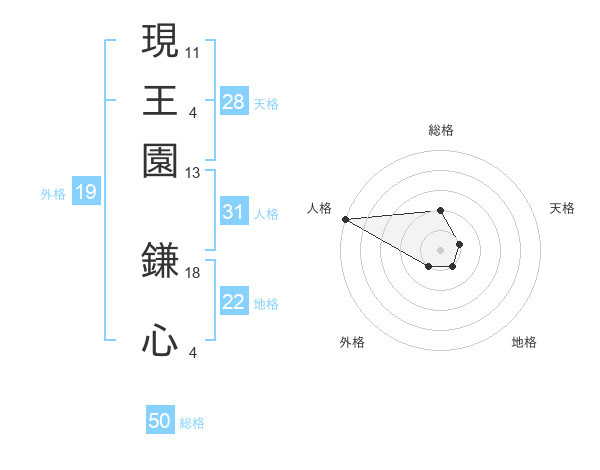 現王園 鎌心さんを姓名の画数から五運を鑑定