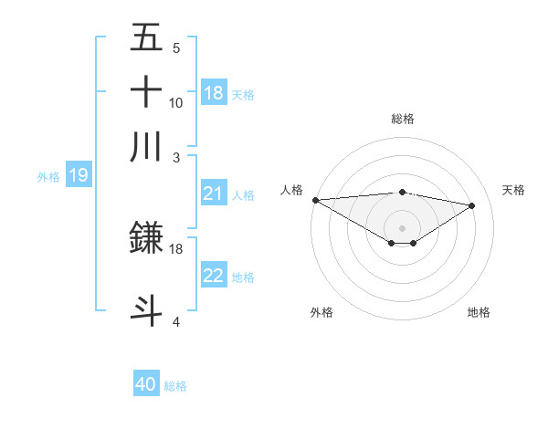 五十川 鎌斗さんを姓名の画数から五運を鑑定