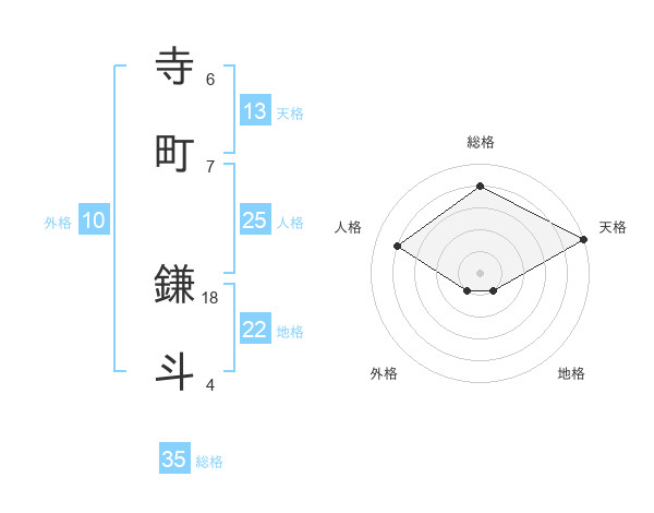 寺町 鎌斗さんの総格は35画の4点!
