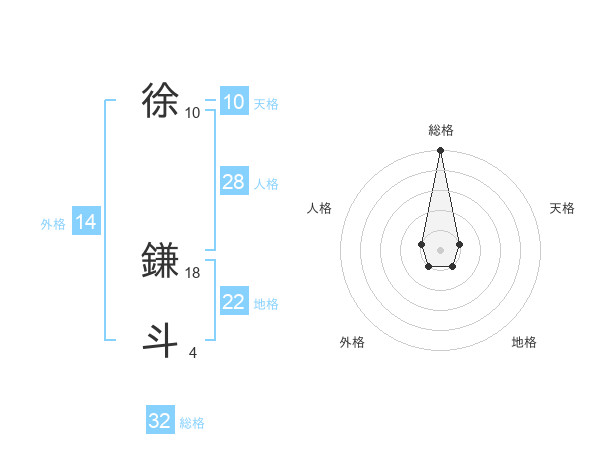 徐 鎌斗さんの総格は32画の5点!