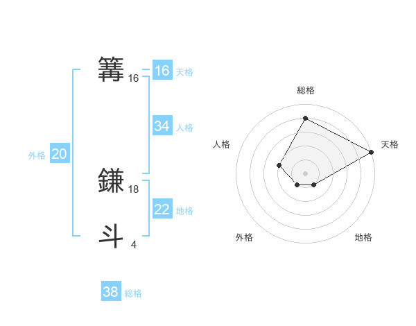 篝 鎌斗さんの総格は38画の4点!