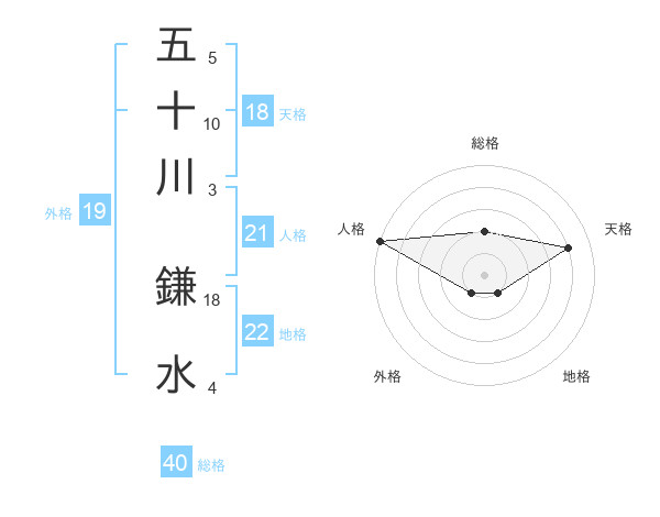 五十川 鎌水さんを姓名の画数から五運を鑑定