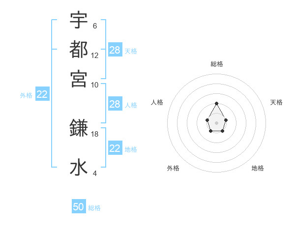 宇都宮 鎌水さんを姓名の画数から五運を鑑定