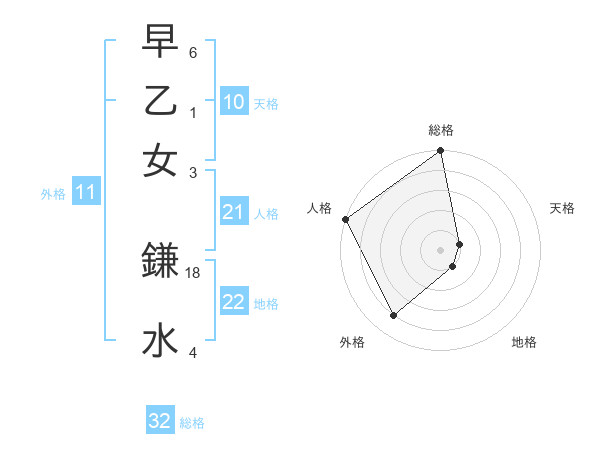 早乙女 鎌水さんを姓名の画数から五運を鑑定