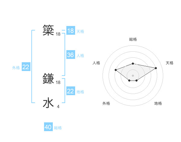 簗 鎌水さんの総格は40画の2点!
