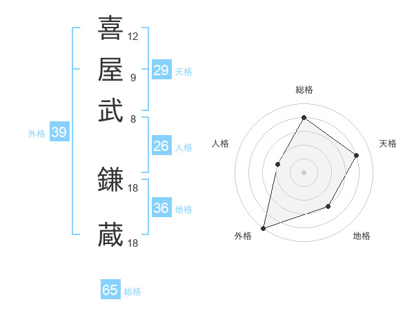 喜屋武 鎌蔵さんの総格は65画の4点!