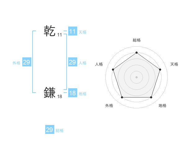 乾 鎌さんの総格は29画の4点!