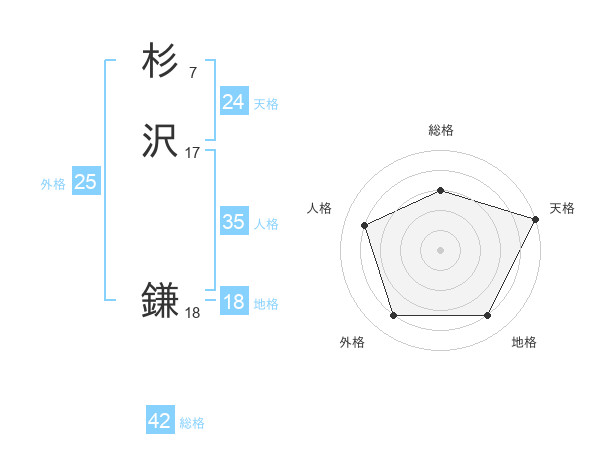 杉沢 鎌さんの天格は24画の5点!
