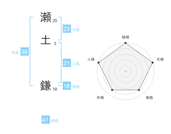 瀬土 鎌さんの総格は41画の5点!