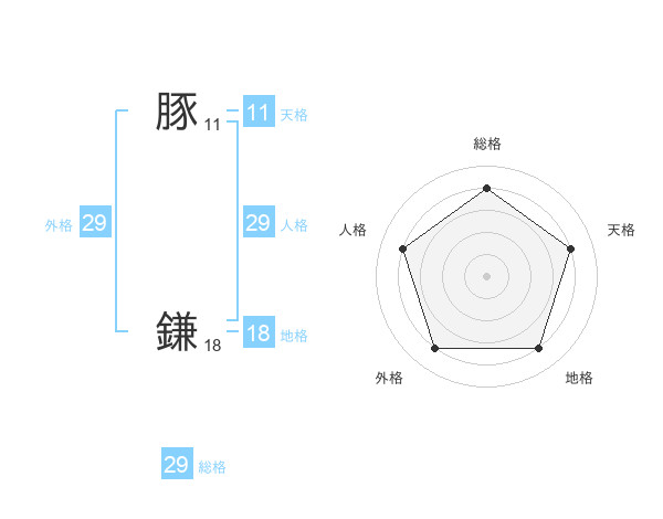 豚 鎌さんの総格は29画の4点!