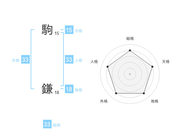 駒 鎌さんの総格は33画の4点