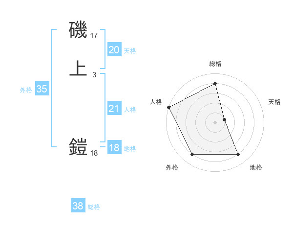 磯上 鎧さんを姓名の画数から五運を鑑定