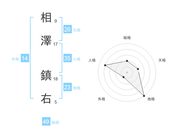 相澤 鎮右さんを姓名の画数から五運を鑑定