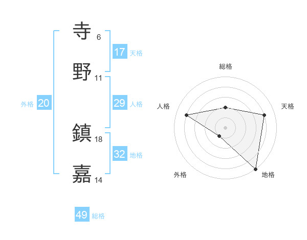 寺野 鎮嘉さんを姓名の画数から五運を鑑定