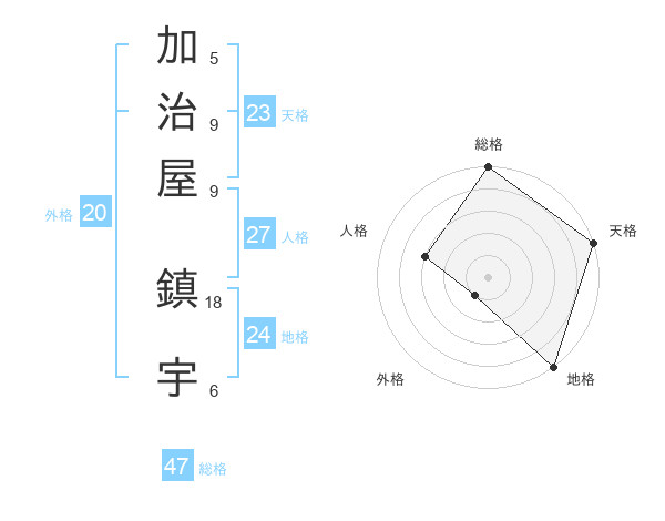 加治屋 鎮宇さんの総格は47画の5点