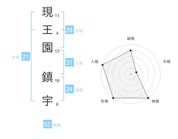 現王園 鎮宇さんを姓名の画数から五運を鑑定