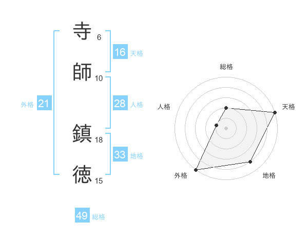 寺師 鎮徳さんの天格は16画の5点!