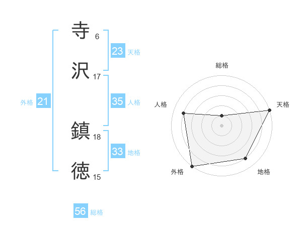寺沢 鎮徳さんの天格は23画の5点!