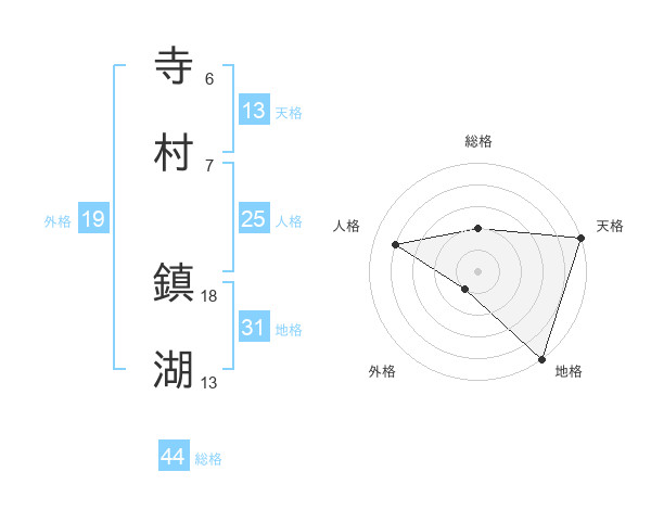 寺村 鎮湖さんの総格は44画の2点!
