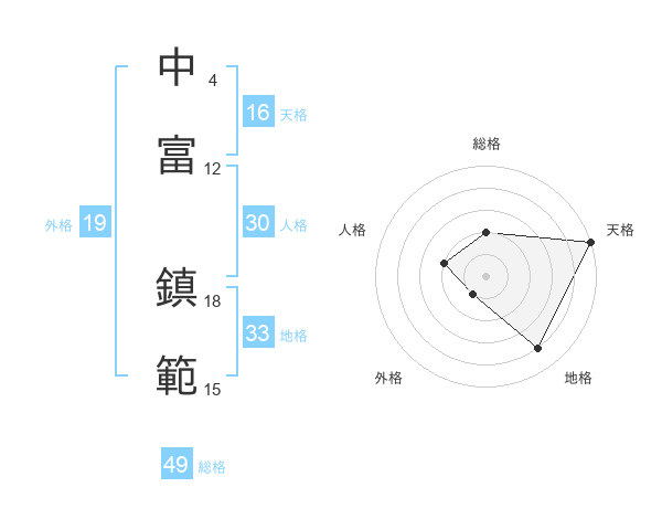 中富 鎮範さんを姓名の画数から五運を鑑定