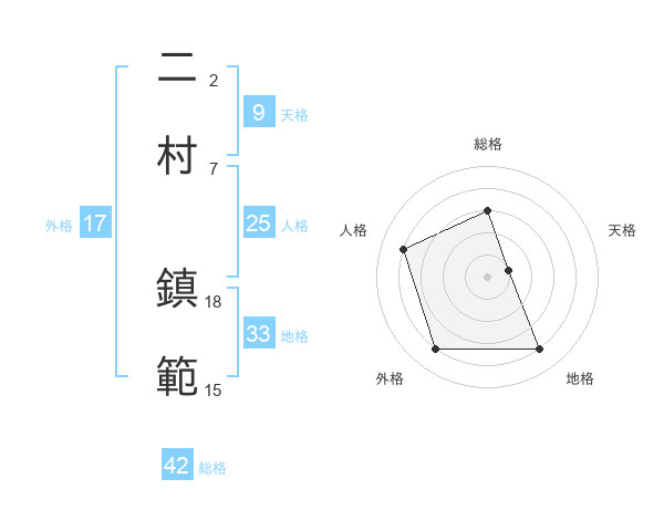 二村 鎮範さんの総格は42画の3点!
