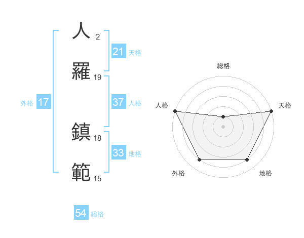 人羅 鎮範さんを姓名の画数から五運を鑑定