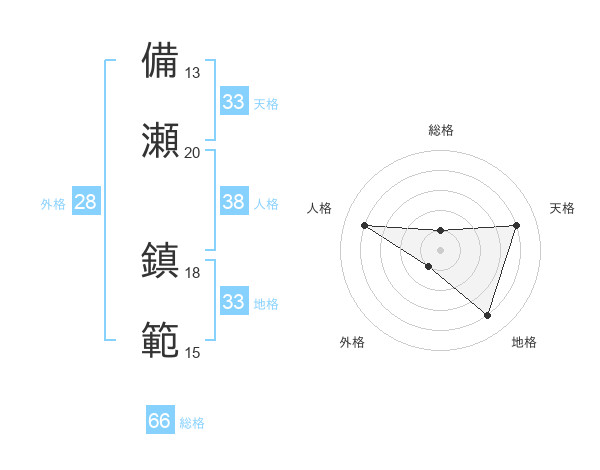 備瀬 鎮範さんの総格は66画の1点!