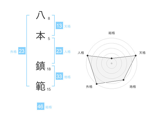 八本 鎮範さんを姓名の画数から五運を鑑定